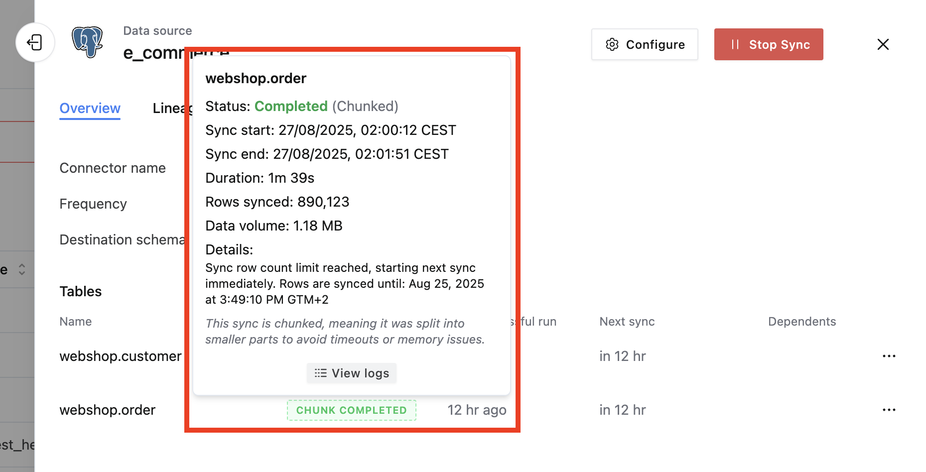 Better visibility and explanation for chunked sync logic, so you understand how large datasets are split during ingestion.